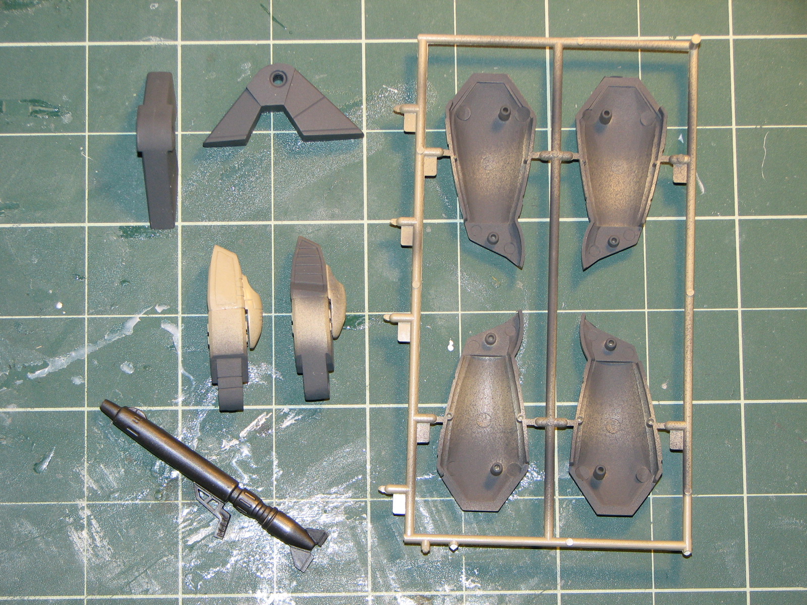 Euro I gray on the exhaust-feet, knees, intakes, and inside of lower legs; gunmetal on the gun.